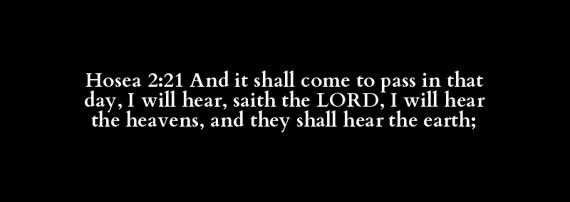 Hosea 2:21 And it shall come to pass in that day, I will hear, saith the LORD, I will hear the heavens, and they shall hear the earth;