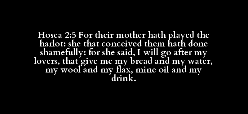 Hosea 2:5 For their mother hath played the harlot: she that conceived them hath done shamefully: for she said, I will go after my lovers, that give me my bread and my water, my wool and my flax, mine oil and my drink.