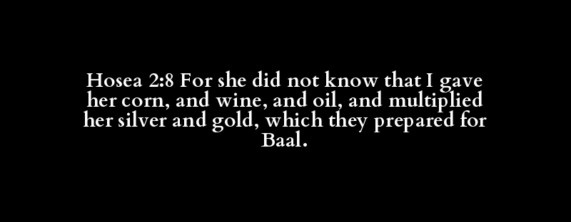 Hosea 2:8 For she did not know that I gave her corn, and wine, and oil, and multiplied her silver and gold, which they prepared for Baal.