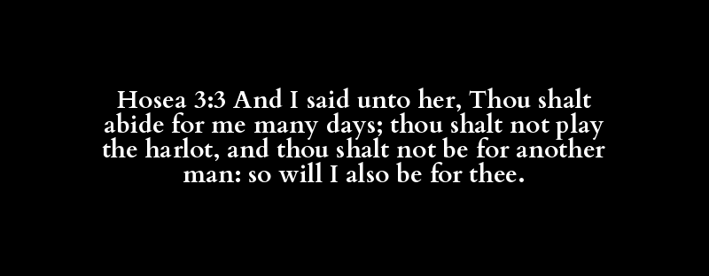 Hosea 3:3 And I said unto her, Thou shalt abide for me many days; thou shalt not play the harlot, and thou shalt not be for another man: so will I also be for thee.