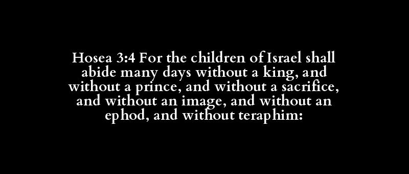 Hosea 3:4 For the children of Israel shall abide many days without a king, and without a prince, and without a sacrifice, and without an image, and without an ephod, and without teraphim: