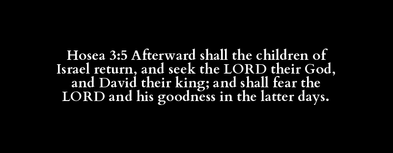 Hosea 3:5 Afterward shall the children of Israel return, and seek the LORD their God, and David their king; and shall fear the LORD and his goodness in the latter days.