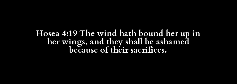 Hosea 4:19 The wind hath bound her up in her wings, and they shall be ashamed because of their sacrifices.