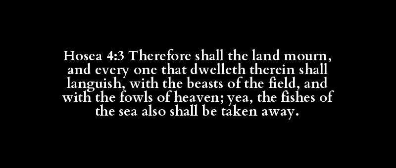 Hosea 4:3 Therefore shall the land mourn, and every one that dwelleth therein shall languish, with the beasts of the field, and with the fowls of heaven; yea, the fishes of the sea also shall be taken away.