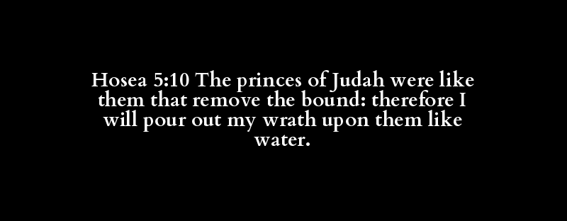 Hosea 5:10 The princes of Judah were like them that remove the bound: therefore I will pour out my wrath upon them like water.