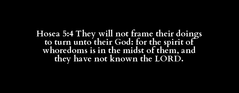 Hosea 5:4 They will not frame their doings to turn unto their God: for the spirit of whoredoms is in the midst of them, and they have not known the LORD.