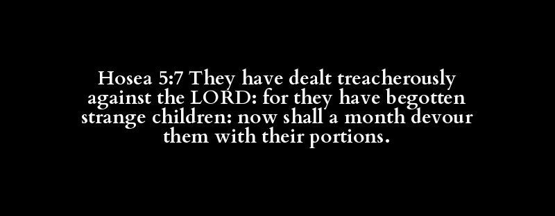Hosea 5:7 They have dealt treacherously against the LORD: for they have begotten strange children: now shall a month devour them with their portions.