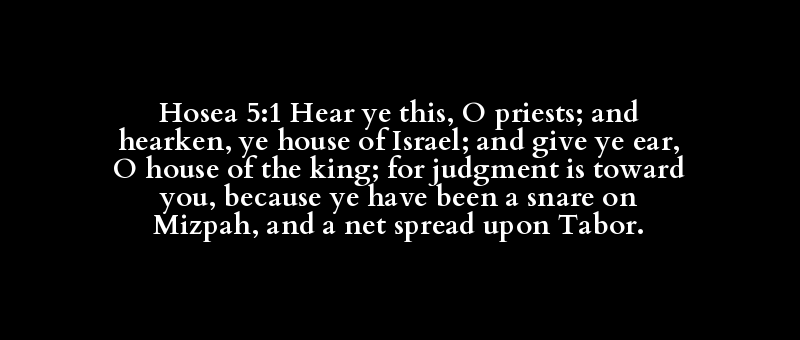 Hosea 5:1 Hear ye this, O priests; and hearken, ye house of Israel; and give ye ear, O house of the king; for judgment is toward you, because ye have been a snare on Mizpah, and a net spread upon Tabor.