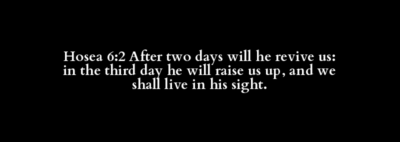 Hosea 6:2 After two days will he revive us: in the third day he will raise us up, and we shall live in his sight.