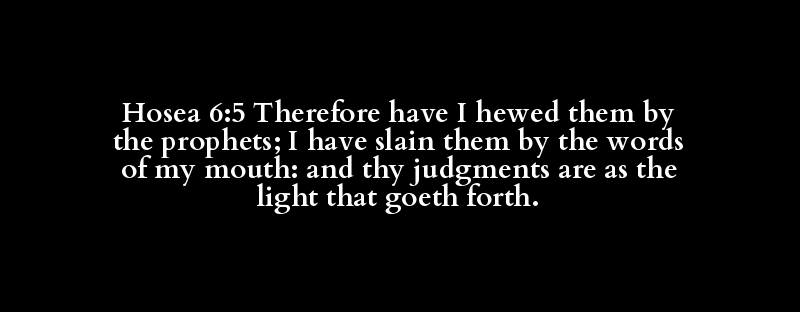 Hosea 6:5 Therefore have I hewed them by the prophets; I have slain them by the words of my mouth: and thy judgments are as the light that goeth forth.