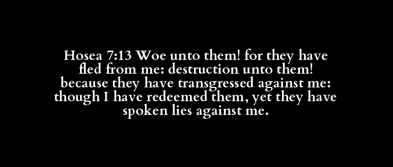 Hosea 7:13 Woe unto them! for they have fled from me: destruction unto them! because they have transgressed against me: though I have redeemed them, yet they have spoken lies against me.