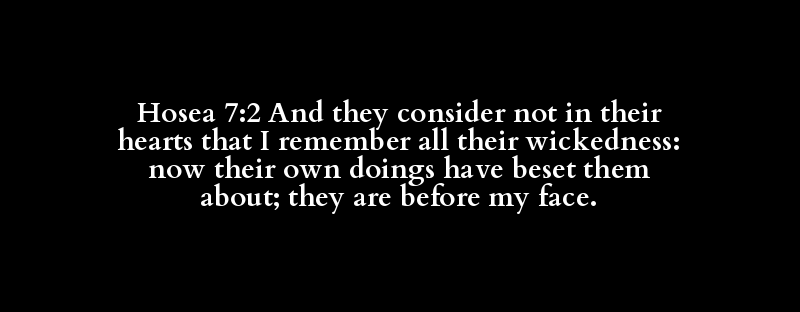 Hosea 7:2 And they consider not in their hearts that I remember all their wickedness: now their own doings have beset them about; they are before my face.