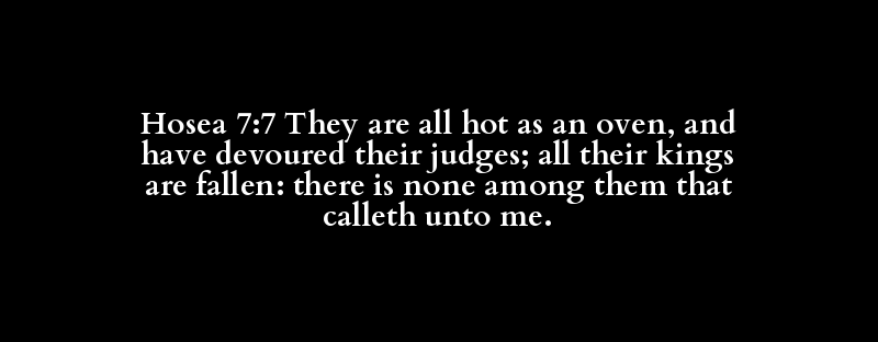 Hosea 7:7 They are all hot as an oven, and have devoured their judges; all their kings are fallen: there is none among them that calleth unto me.