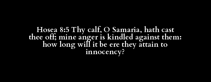 Hosea 8:5 Thy calf, O Samaria, hath cast thee off; mine anger is kindled against them: how long will it be ere they attain to innocency?