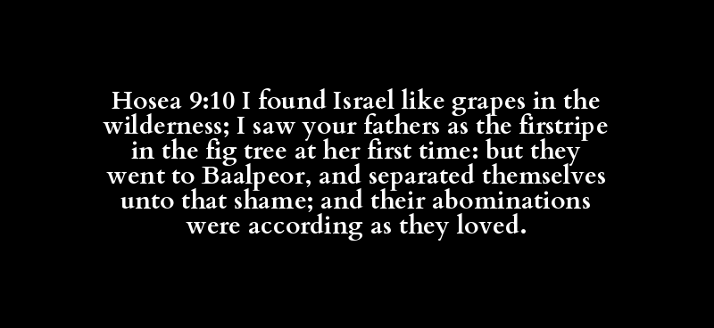 Hosea 9:10 I found Israel like grapes in the wilderness; I saw your fathers as the firstripe in the fig tree at her first time: but they went to Baalpeor, and separated themselves unto that shame; and their abominations were according as they loved.