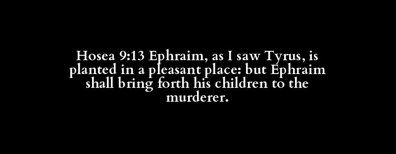 Hosea 9:13 Ephraim, as I saw Tyrus, is planted in a pleasant place: but Ephraim shall bring forth his children to the murderer.