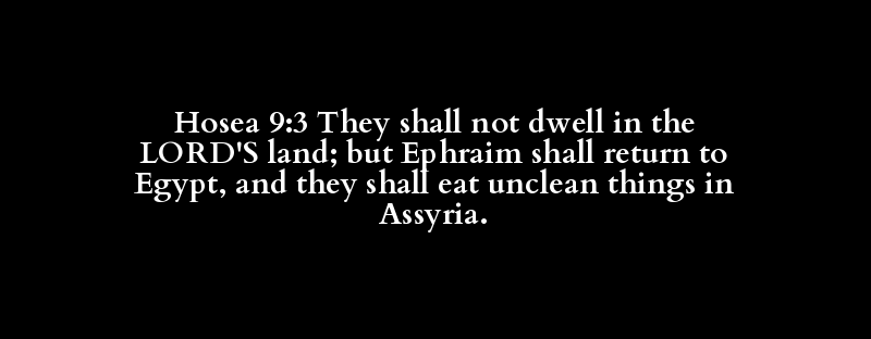 Hosea 9:3 They shall not dwell in the LORD'S land; but Ephraim shall return to Egypt, and they shall eat unclean things in Assyria.