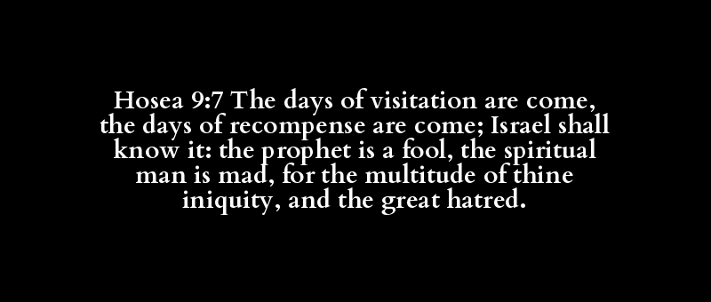 Hosea 9:7 The days of visitation are come, the days of recompense are come; Israel shall know it: the prophet is a fool, the spiritual man is mad, for the multitude of thine iniquity, and the great hatred.