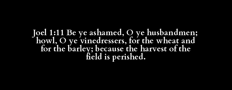 Joel 1:11 Be ye ashamed, O ye husbandmen; howl, O ye vinedressers, for the wheat and for the barley; because the harvest of the field is perished.