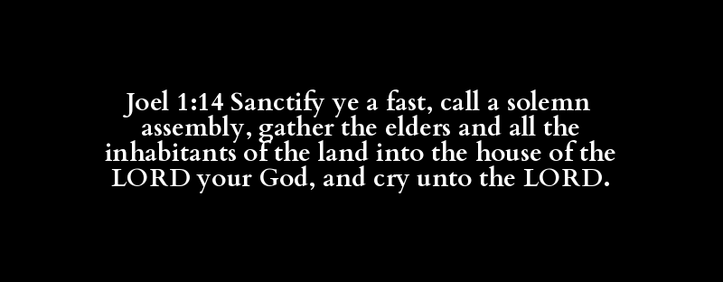 Joel 1:14 Sanctify ye a fast, call a solemn assembly, gather the elders and all the inhabitants of the land into the house of the LORD your God, and cry unto the LORD.