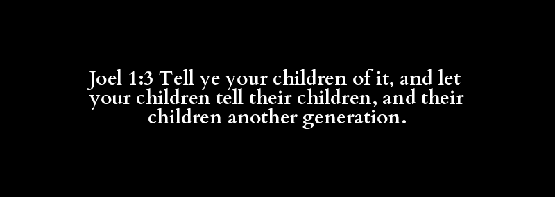 Joel 1:3 Tell ye your children of it, and let your children tell their children, and their children another generation.