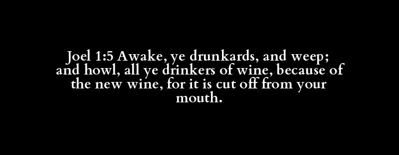 Joel 1:5 Awake, ye drunkards, and weep; and howl, all ye drinkers of wine, because of the new wine, for it is cut off from your mouth.