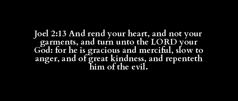 Joel 2:13 And rend your heart, and not your garments, and turn unto the LORD your God: for he is gracious and merciful, slow to anger, and of great kindness, and repenteth him of the evil.