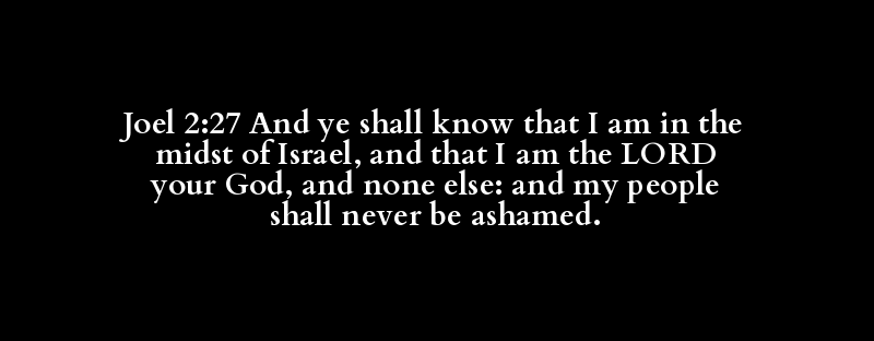 Joel 2:27 And ye shall know that I am in the midst of Israel, and that I am the LORD your God, and none else: and my people shall never be ashamed.