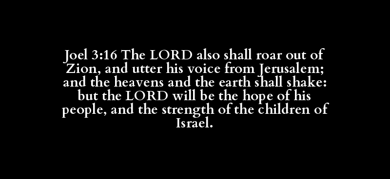 Joel 3:16 The LORD also shall roar out of Zion, and utter his voice from Jerusalem; and the heavens and the earth shall shake: but the LORD will be the hope of his people, and the strength of the children of Israel.