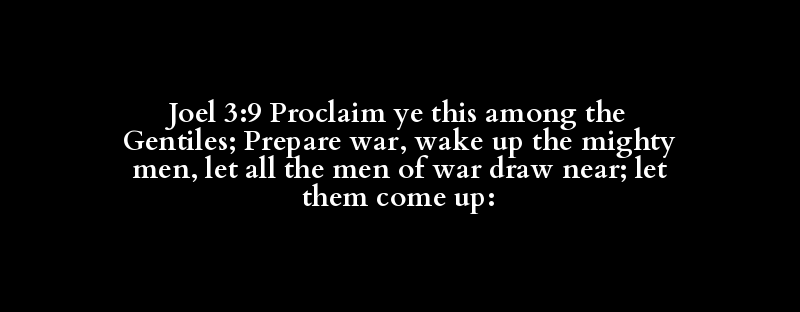 Joel 3:9 Proclaim ye this among the Gentiles; Prepare war, wake up the mighty men, let all the men of war draw near; let them come up: