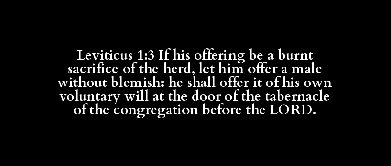 Leviticus 1:3 If his offering be a burnt sacrifice of the herd, let him offer a male without blemish: he shall offer it of his own voluntary will at the door of the tabernacle of the congregation before the LORD.