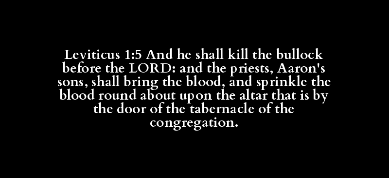 Leviticus 1:5 And he shall kill the bullock before the LORD: and the priests, Aaron's sons, shall bring the blood, and sprinkle the blood round about upon the altar that is by the door of the tabernacle of the congregation.