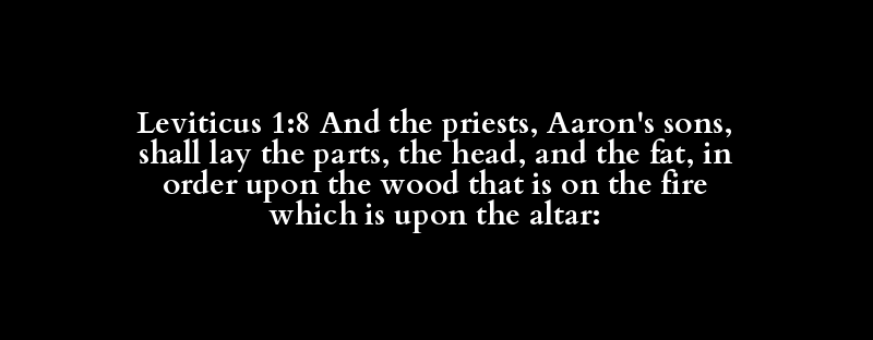 Leviticus 1:8 And the priests, Aaron's sons, shall lay the parts, the head, and the fat, in order upon the wood that is on the fire which is upon the altar:
