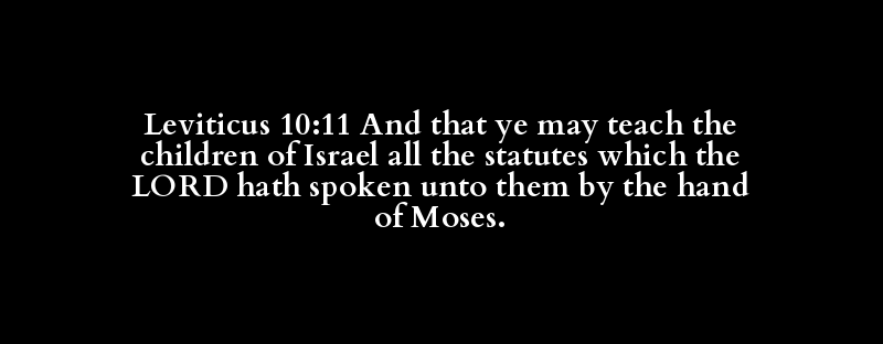 Leviticus 10:11 And that ye may teach the children of Israel all the statutes which the LORD hath spoken unto them by the hand of Moses.