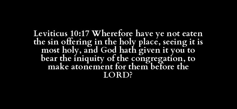 Leviticus 10:17 Wherefore have ye not eaten the sin offering in the holy place, seeing it is most holy, and God hath given it you to bear the iniquity of the congregation, to make atonement for them before the LORD?