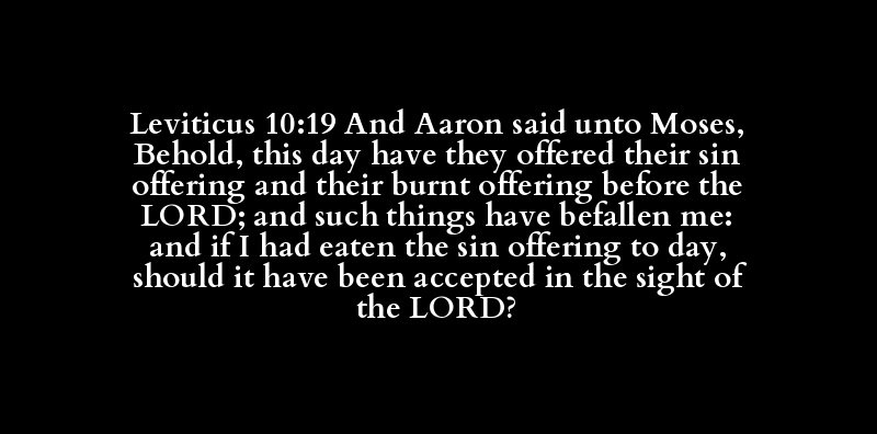 Leviticus 10:19 And Aaron said unto Moses, Behold, this day have they offered their sin offering and their burnt offering before the LORD; and such things have befallen me: and if I had eaten the sin offering to day, should it have been accepted in the sight of the LORD?
