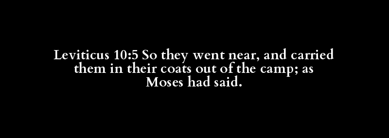 Leviticus 10:5 So they went near, and carried them in their coats out of the camp; as Moses had said.