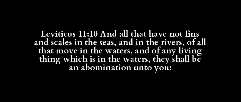 Leviticus 11:10 And all that have not fins and scales in the seas, and in the rivers, of all that move in the waters, and of any living thing which is in the waters, they shall be an abomination unto you: