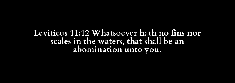 Leviticus 11:12 Whatsoever hath no fins nor scales in the waters, that shall be an abomination unto you.