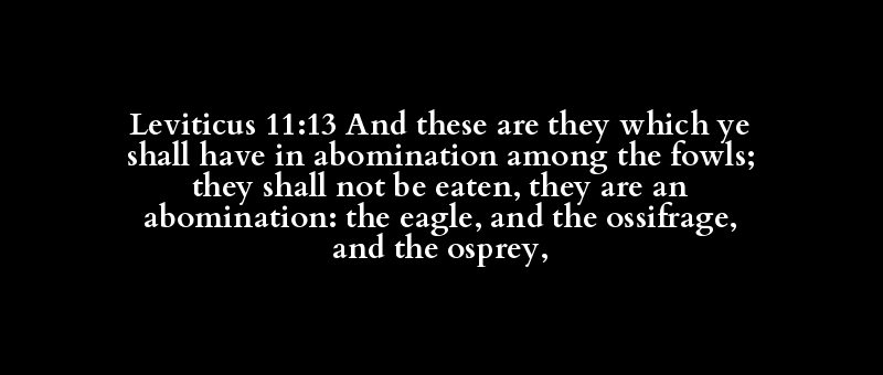 Leviticus 11:13 And these are they which ye shall have in abomination among the fowls; they shall not be eaten, they are an abomination: the eagle, and the ossifrage, and the osprey,