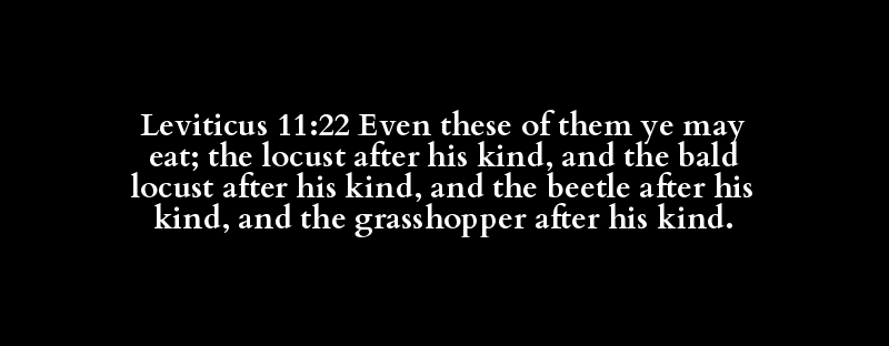 Leviticus 11:22 Even these of them ye may eat; the locust after his kind, and the bald locust after his kind, and the beetle after his kind, and the grasshopper after his kind.
