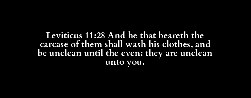 Leviticus 11:28 And he that beareth the carcase of them shall wash his clothes, and be unclean until the even: they are unclean unto you.