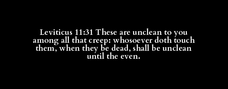 Leviticus 11:31 These are unclean to you among all that creep: whosoever doth touch them, when they be dead, shall be unclean until the even.