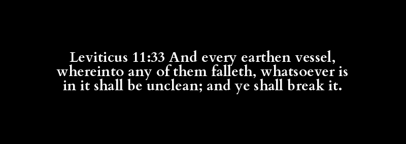 Leviticus 11:33 And every earthen vessel, whereinto any of them falleth, whatsoever is in it shall be unclean; and ye shall break it.