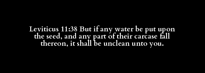 Leviticus 11:38 But if any water be put upon the seed, and any part of their carcase fall thereon, it shall be unclean unto you.