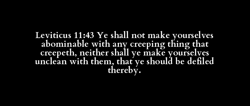 Leviticus 11:43 Ye shall not make yourselves abominable with any creeping thing that creepeth, neither shall ye make yourselves unclean with them, that ye should be defiled thereby.