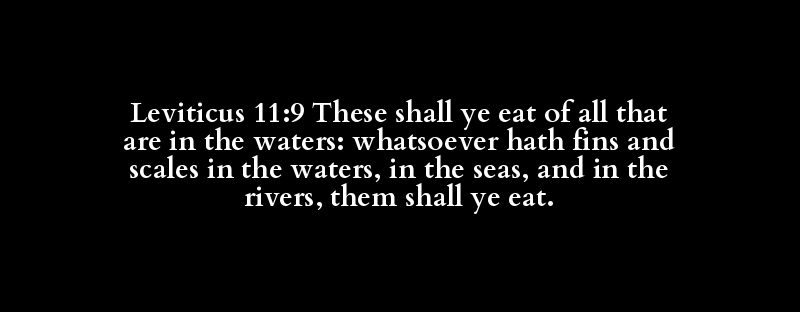 Leviticus 11:9 These shall ye eat of all that are in the waters: whatsoever hath fins and scales in the waters, in the seas, and in the rivers, them shall ye eat.