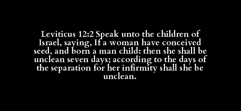 Leviticus 12:2 Speak unto the children of Israel, saying, If a woman have conceived seed, and born a man child: then she shall be unclean seven days; according to the days of the separation for her infirmity shall she be unclean.