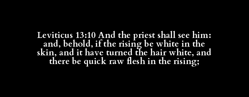 Leviticus 13:10 And the priest shall see him: and, behold, if the rising be white in the skin, and it have turned the hair white, and there be quick raw flesh in the rising;