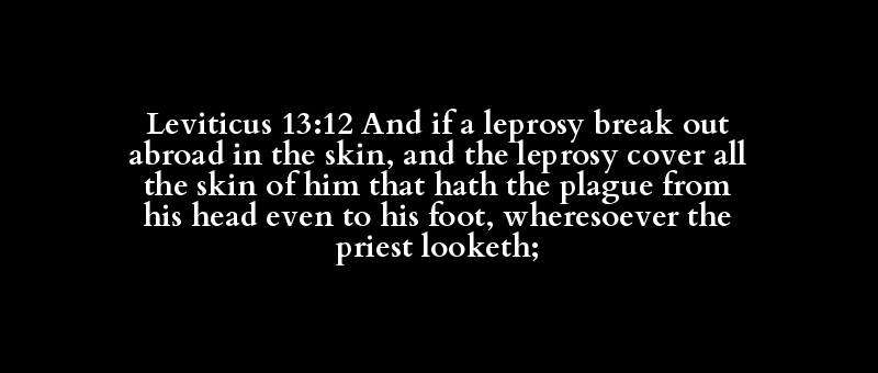 Leviticus 13:12 And if a leprosy break out abroad in the skin, and the leprosy cover all the skin of him that hath the plague from his head even to his foot, wheresoever the priest looketh;
